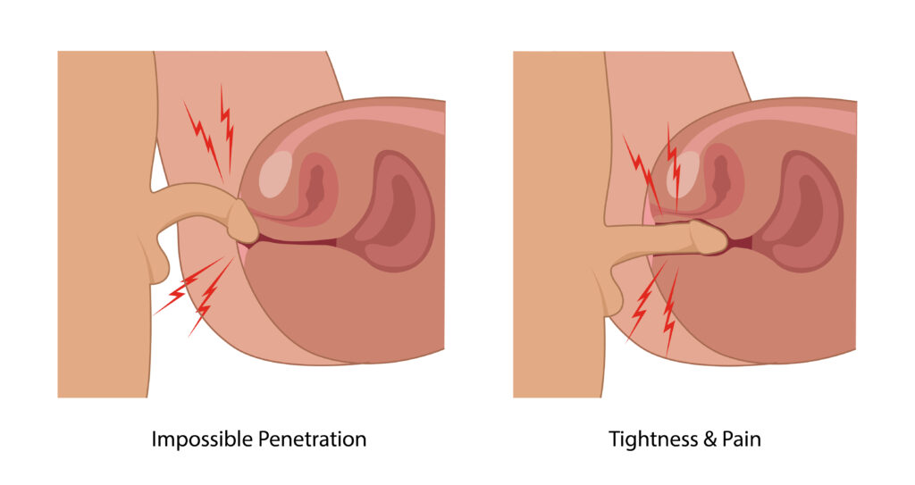 It’s important to note that vaginismus is an involuntary reaction to penetration. The pelvic floor muscles are overreacting to a perceived negative situation at a subconscious level. Trying to “will” our muscles into behaving and relaxing during penetration might be near impossible without targeting interventions.